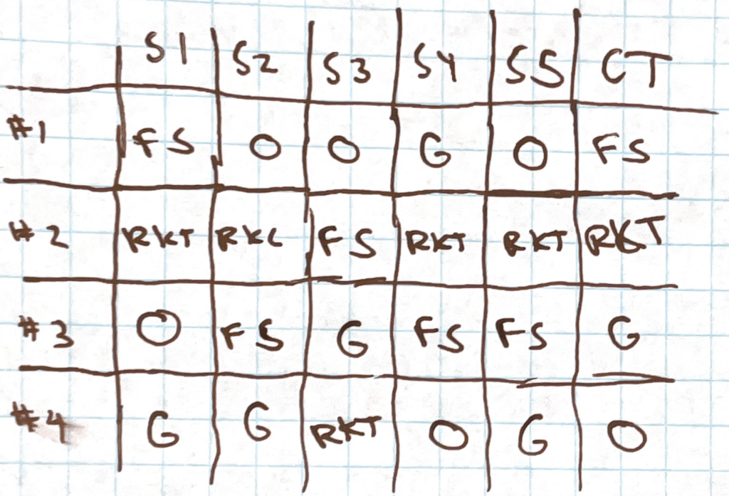 After this I introduced the concept of a Condorcet method, which tournaments are, despite their manipulability flaw. So I expanded our chart to include the methods we’d be doing soon: Copeland’s, Minimax, Nanson, and Ranked Pairs.
