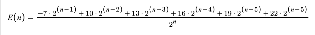 In the Pokémon TCG Pocket app, I would earn 10 points for winning a match and lose 7 points when losing a match. However, you also get a win streak bonus – the second win in a row gets a bonus of 3 points, the third gets 6, the fourth 9, and the fifth (and all subsequent) gets 12. Assuming I have a win rate of 50% (which I did at the time), what’s my expected value for playing n games? (How many games would I expect to play to earn x points?)